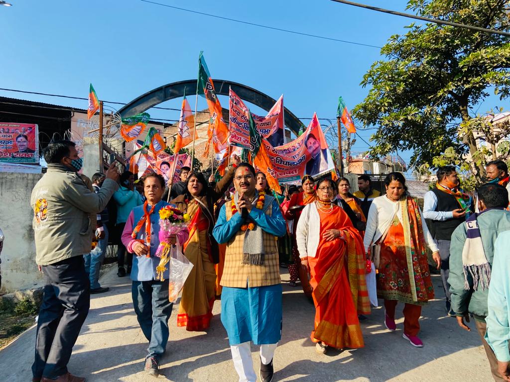 देहरादून: (देवभूमि जनसंवाद न्यूज़) भाजपा विजय संकल्प यात्रा का देहरादून कैंट विधानसभा में वरिष्ठ भाजपा नेता श्री दिनेश रावत द्वारा बल्लूपुर चौक पर सैकड़ो की संख्या में कार्यकर्ताओं के साथ भव्य स्वागत करा गया। महिलाओं द्वारा पारम्परिक पोशाक व पहाड़ी नथ पहन कर स्वागत करा। इस अवसर पर रथ में मौजूद राष्ट्रीय महामंत्री श्री तरुण चुग व अन्य अतिथियों पर पुष्प वर्षा करी गयी व जोरदार आतिशबाजी बाजी करी गयी।