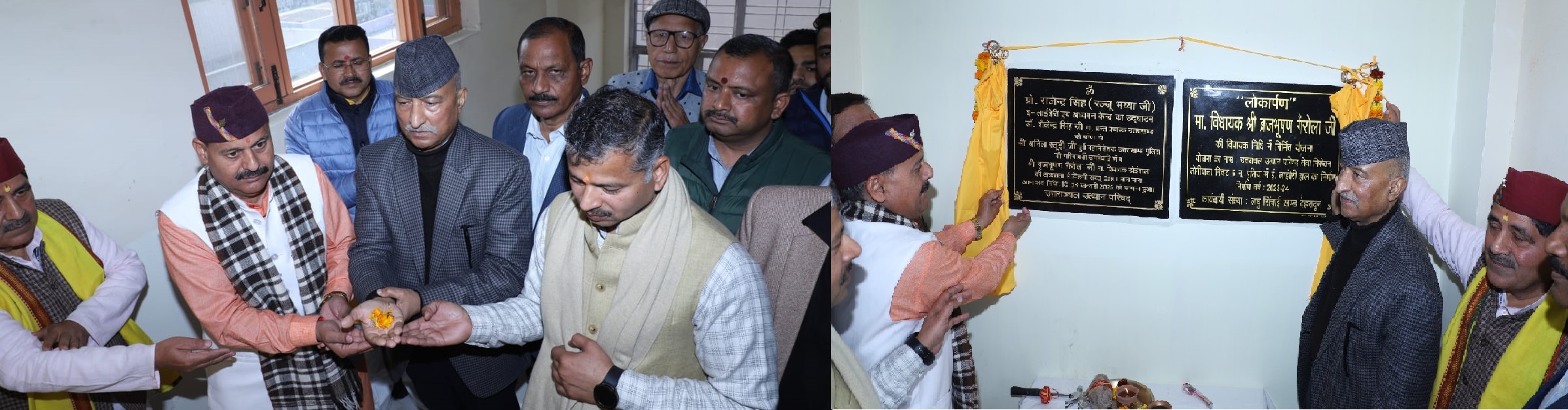 देहरादून, (देवभूमि जनसंवाद न्यूज़) मौनी अमावस्या के शुभ अवसर एवं समाज सेवा एवं शिक्षा के क्षेत्र में विशिष्ट योगदान एवं समर्पित राष्ट्रीय स्वयंसेवक संघ के पूर्व सर संघचालक स्व० प्रो० राजेन्द्र सिंह (रज्जू भैय्या) की 103वीं पुण्य तिथि पर देहरादून के अलकनंदा इनक्लेव जोगीवाला रिंगरोड स्थित ‘सेवा निकेतन’ भवन के तृतीय तल में निर्मित लाइब्रेरी में उत्तरांचल उत्थान परिषद की ई-लाइब्रेरी एवं अध्ययन केन्द्र देहरादून में उद्घाटन किया गया। सर्वप्रथम कार्यक्रम के अध्यक्ष श्री बृजभूषण गैरोला माननीय विधायक डोइवाला (देहरादून), मुख्य अतिथि पूर्व पुलिस महानिदेशक अनिल रतूड़ी उपस्थित एवं कार्यक्रम के मुख्य वक्ता प्रांत प्रचारक डा० शैलेन्द्र जी के द्वारा उत्तरांचल उत्थान परिषद के कार्यकर्ताओं एवं अन्य गणमान्य अतिथियों की उपस्थिति में मंत्रोच्चारण के साथ पूजन कर लाइब्रेरी हाल के लोकार्पण एवं ई-लाइब्रेरी एवं अध्ययन केन्द्र के शुभारंभ के शिलापटों का अनावरण किया गया। ।