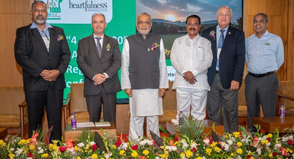 देहरादून, (देवभूमि जनसंवाद न्यूज़) हार्टफुलनेस, फ़्रांस के कृषि और खाद्य संप्रभुता मंत्रालय; डॉ रेड्डीज फाउंडेशन; ICRISAT, समुन्नति, बायोस्फीयर और फोंडेशन फॉर एल’एग्रीकल्चर एंड रूरलाइट डेन्स ले मोंडे (FARM) के सहयोग से आज से हैदराबाद के बाहरी इलाके में हार्टफुलनेस के मुख्यालय कान्हा शांति वनम में बड़े पैमाने पर ‘4 प्रति 1000’ एशिया-प्रशांत क्षेत्रीय सम्मेलन की मेजबानी कर रहा है।