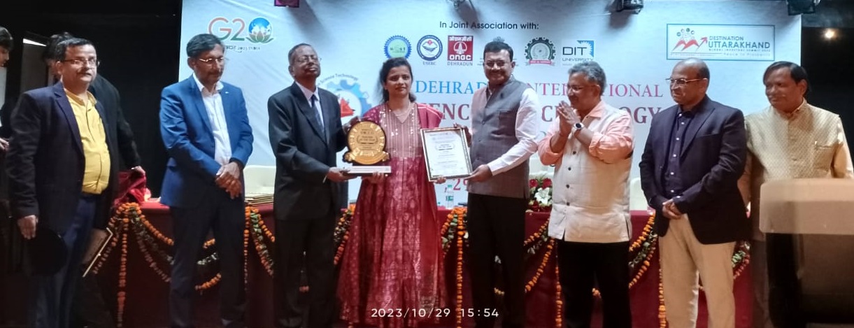 देहरादून, (देवभूमि जनसंवाद न्यूज़) उत्तरांचल विश्वविद्यालय की एसोसिएट प्रोफेसर एवं विभागाध्यक्ष ( स्कूल ऑफ़ मैनेजमेंट ) डॉ. तिलोत्तमा सिंह को पुरस्कार स्क्रीनिंग समिति के माननीय जूरी सदस्यों के द्वारा देहरादून अंतर्राष्ट्रीय विज्ञान एवं प्रौद्योगिकी महोत्सव में उत्तराखंड के टीचर ऑफ द ईयर अवार्ड 2023 से सम्मानित किया गया। यह पुरस्कार देहरादून अंतर्राष्ट्रीय विज्ञान और प्रौद्योगिकी महोत्सव-2023 (DISTF-2023) के दौरान उत्तराखंड सरकार के अतिरिक्त मुख्य सचिव द्वारा प्रदान किया गया।