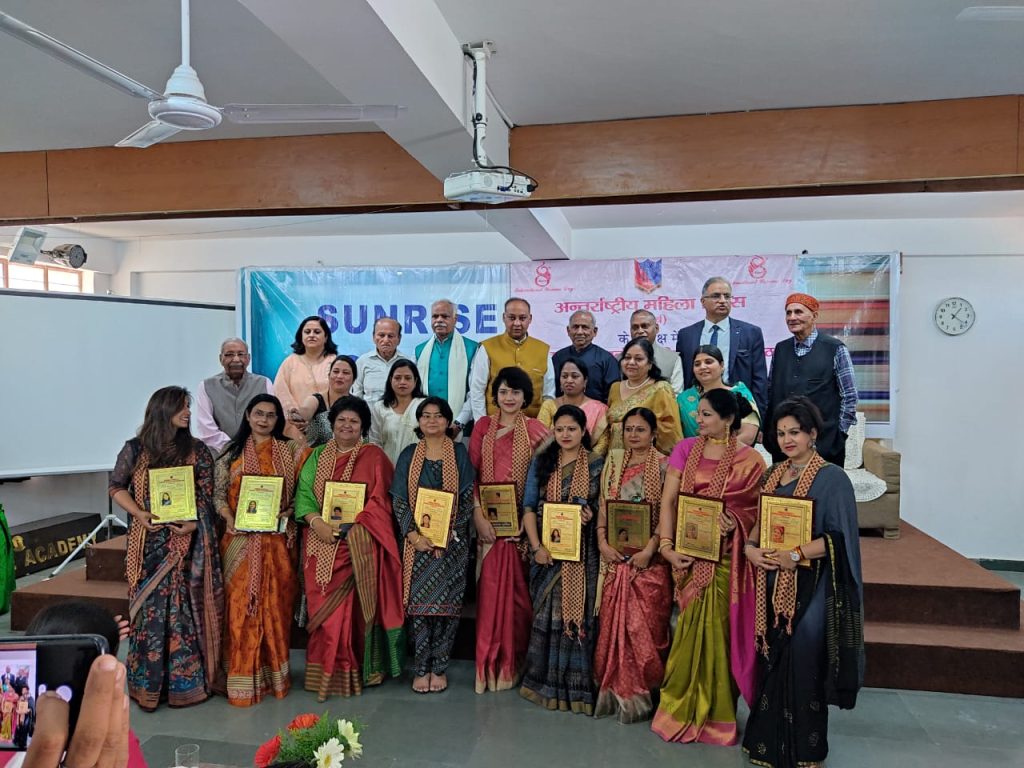 बीना अग्रवाल (नृत्य कला के क्षेत्र में) संगीता धौंडियाल (गायकी के क्षेत्र) डॉक्टर आशु लेखा गुप्ता (ग्राफिक एरा डीम्ड यूनिवर्सिटी) निधि बेलवाल ( सरदार भगवान सिंह यूनिवर्सिटी) के क्षेत्र में साधना जयराज (पर्यावरणविद) नीतू तोमर (प्रधानाचार्य सनराइज अकैडमी)मोनिका शर्मा (प्रशासनिक अधिकारी सनराइज अकैडमी) अपेक्षा रावत डॉक्टर पूनम शर्मा (सनराइज अकैडमी) आदि को सम्मानित किया गया।इस अवसर पर वहां मौजूद महिला पुलिस कर्मियों को भी संगठन द्वारा सम्मानित किया गया।
