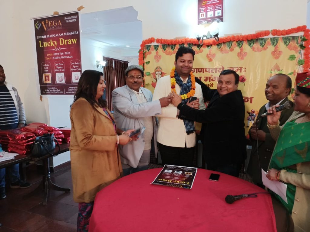 देहरादून- (देवभूमि जनसंवाद न्यूज़) शुभ मंगलम संस्था द्वारा निर्धन कन्या के विवाह हेतु आवश्यक सामान प्रदान किया तथा वैगा जवैल्स देहरादून ने उपहारों से किया सम्मानित मसूरी – निर्धन कन्याओं के वैवाहिक आयोजन हेतु शुभ मंगलम संस्था का योगदान सराहनीय है, ऐसे कार्यों में समाज को अधिक से सहयोग करना चाहिए,कहते हुए मुख्य अतिथि अनुज गुप्ता – नगरपालिका अध्यक्ष मसूरी ने कन्या दान- महादान आयोजन का द्वीप प्रज्जविलत कर शुभारंभ करते हुए शुभ मंगलम संस्था की सराहना की। शुभ मंगलम द्वारा संस्था के तृतीय की स्थापना दिवस पर अबतक 23, कन्याओं के विवाह हेतु आवश्यक सामान उपलब्ध करवाने का पुण्य कार्य किया गया। मसूरी स्थित कनाट कैसल होटल में शुभ मंगलम संस्था के तीसरे जन्मोत्सव मनाते हुए संस्था की प्रतिनिधि रेनू अग्रवाल ने जानकारी प्रदान की। कि आर्थिक रूप से कमजोर परिवारों से अनुरोध है कि निर्धारित समय से अनुरोध किये जाने के बाद ही पात्र परिवारों को कन्या विवाह हेतु सहयोग प्रदान किए जाने का निर्णय पारित किया गया है। इस अवसर पर सवा सौ से अधिक महिलाओं की गरिमामयी उपस्थिति में वैगा ज्वैल्स, राजपुर रोड, देहरादून के प्रोपराइटर हरीश मित्तल द्वारा सभी प्रतिभागी महिलाओं को उपहार प्रदान कर सम्मानित किया गया। समारोह में अपने जीवन में 127 बार रक्तदान करने वाले योगेश अग्रवाल – प्रदेश अध्यक्ष अखिल भारतीय अग्रवाल ने शुभ मंगलम संस्था की सराहना करते हुए मसूरी के लिए यह ऐतिहासिक कार्य बताया। समारोह को सत्य प्रकाश गोयल- प्रदेश सचिव, मानवाधिकार संगठन, देहरादून तथा ऋतु गोयल- प्रदेश महिला मंत्री ने भी संबोधित किया। *समाजसेवी तथा वैगा जवैल्स के स्वामी हरीश मित्तल ने जहां एक ओर तंबोला,हाउजी गेम के विजेताओं को पुरस्कृत किया, वहीं लकी ड्रा के माध्यम से सोने चांदी के उपहार प्रदान कर विजेताओं का सम्मान किया। इस अवसर पर अतिथियों के साथ साथ शुभमंगल संस्था की संचालिका रेनू अग्रवाल, उमा गुप्ता, मंजू शर्मा, रेनू वाहि, अर्चना गोयल, बबीता अग्रवाल, दीपाली अग्रवाल, नीता राजपाल आदि ने चंदन तिलक से सभी उपस्थितों का स्वागत किया। समारोह में वैसा ज्वैल्स टीम की ओर से हरीश मित्तल के साथ दीपक, अनिता आदि ने उपस्थित होकर समारोह की व्यवस्था में सक्रिय हो सहयोग प्रदान किया।। अन्यों में अनिता सक्सेना, ममता पडियार, नीरज मित्तल, शूरवीर सिंह भंडारी आदि की उपस्थिति में समारोह का रोचक संचालन रेनू अग्रवाल ने किया। *उपरोक्त जानकारी योगेश अग्रवाल द्वारा प्रकाशनार्थ प्रेषित की गई।*