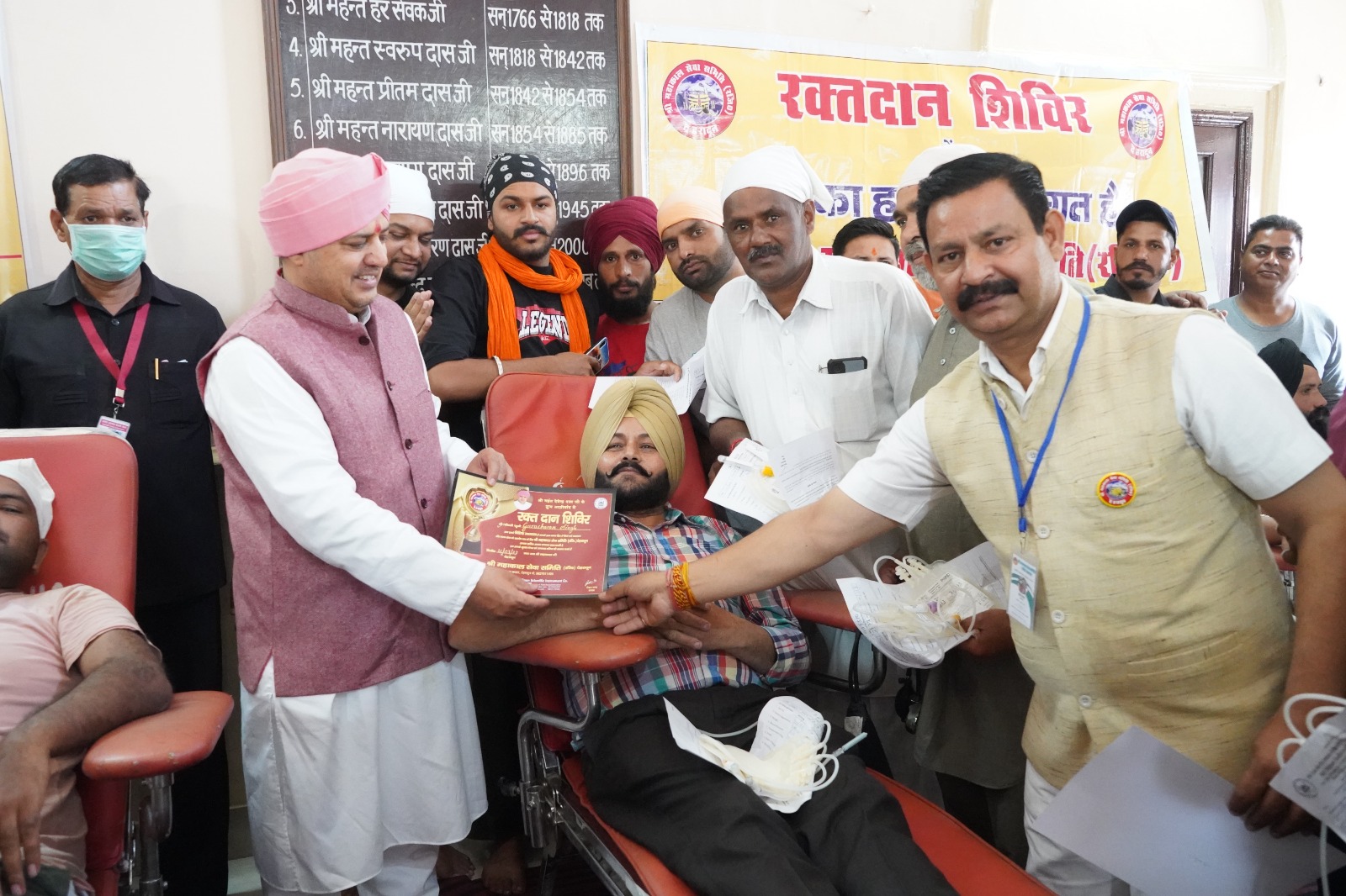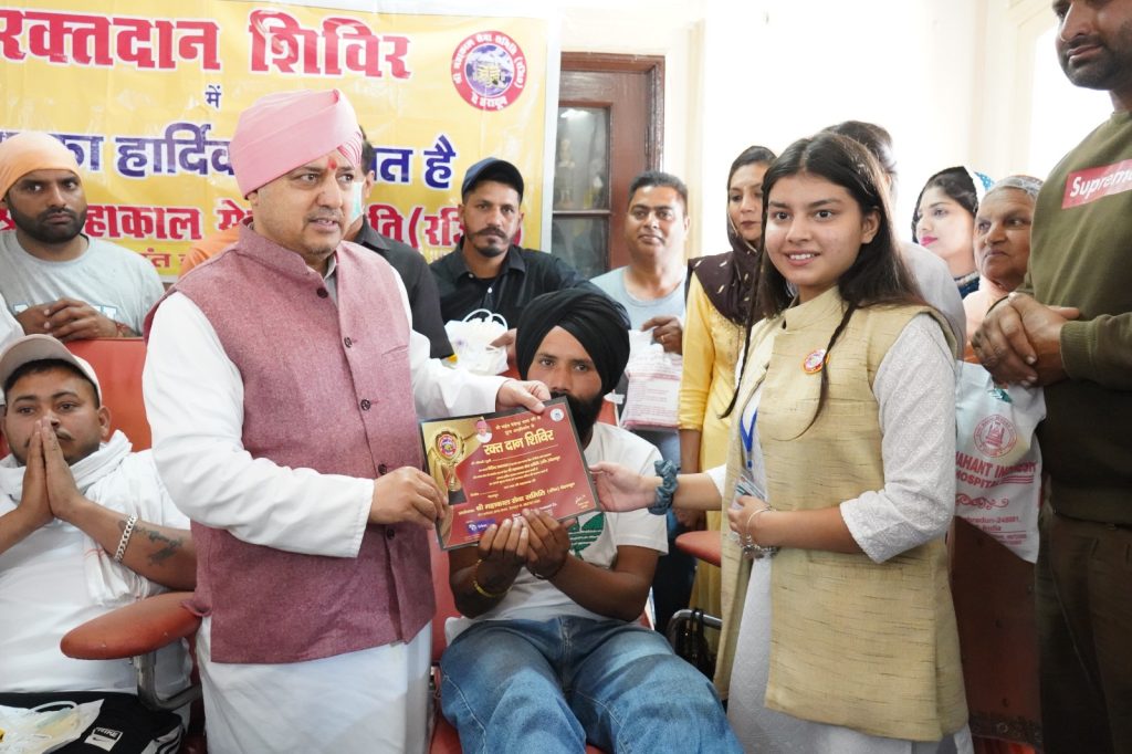 श्री महाकाल सेवा समिति (रजि) व श्री महंत अस्पताल के ब्लड बैंक के सहयोग से स्वैच्छिक रक्तदान शिविर का आयोजन किया गया. शिविर में 157 यूनिट रक्तदान हुआ. शिविर में संगतों व श्री महाकाल सेवा समिती के सद्स्यों व क्षेत्रवासियों ने रक्तांदान किया. जिसमें श्री गुरु राम राय दरबार साहिब के गद्दी नशीन श्री महंत देवेंद्र दास जी ने सभी रक्त दाताओं को प्रशस्ति पत्र देकर सम्मानित किया और आए हुए सभी रक्त दान दाताओं और संस्था के सदस्यों का उत्साहवर्धन किया, महंत जी द्वारा संस्था के द्वारा किए जा रहे अन्य सामाजिक कार्यों की बुरी बुरी प्रशंसा भी करी, और उन्होंने कहा कि उनकी और से भविष्य में भी संस्था को हर तरह के सहयोग मिलता रहेगा,समिति के अध्यक्ष रोशन राणा ने जानकारी दी कि इससे पूर्व समिति 12 स्वेच्छिक रक्तदान शिविर आयोजित कर चुकी है, शनिवार को समिती का 13वा सफल रक्तदान शिविर रहा जिसमें संस्था के अध्यक्ष श्री रोशन राणा जी और आलोक जैन, हेमराज अरोड़ा, सचिन आनंद, राजीव सच्चर,जितेंद्र मलिक, सचिन जैन, बालकिशन शर्मा, संजीव गुप्ता, पुनीत जैन, नितिन अग्रवाल, राकेश आनंद, सागर खरबंदा, संजय मित्तल, राहुल माटा, वैभव पाठक, कृतिका राणा, अनुष्का राना सदस्य मौजूद रहे