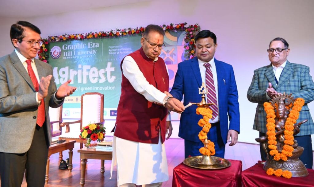 देहरादून। प्रदेश के कृषि मंत्री गणेश जोशी ने आज ग्राफिक इरा हिल यूनिवर्सिटी में आयोजित दो दिवसीय वार्षिक कृषि महोत्सव – एग्रीफेस्ट 2025 का दीप प्रज्वलित कर शुभारंभ किया। इस अवसर पर कृषि मंत्री गणेश जोशी ने एग्रीफेस्ट में लगाए गए स्टॉलों का अवलोकन भी किया।