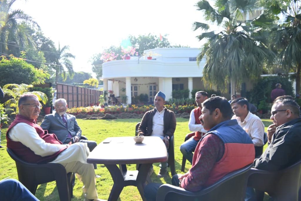 उपनल कर्मचारी महासंघ के पदाधिकारी से वार्ता करते सैनिक कल्याण मंत्री गणेश जोशी