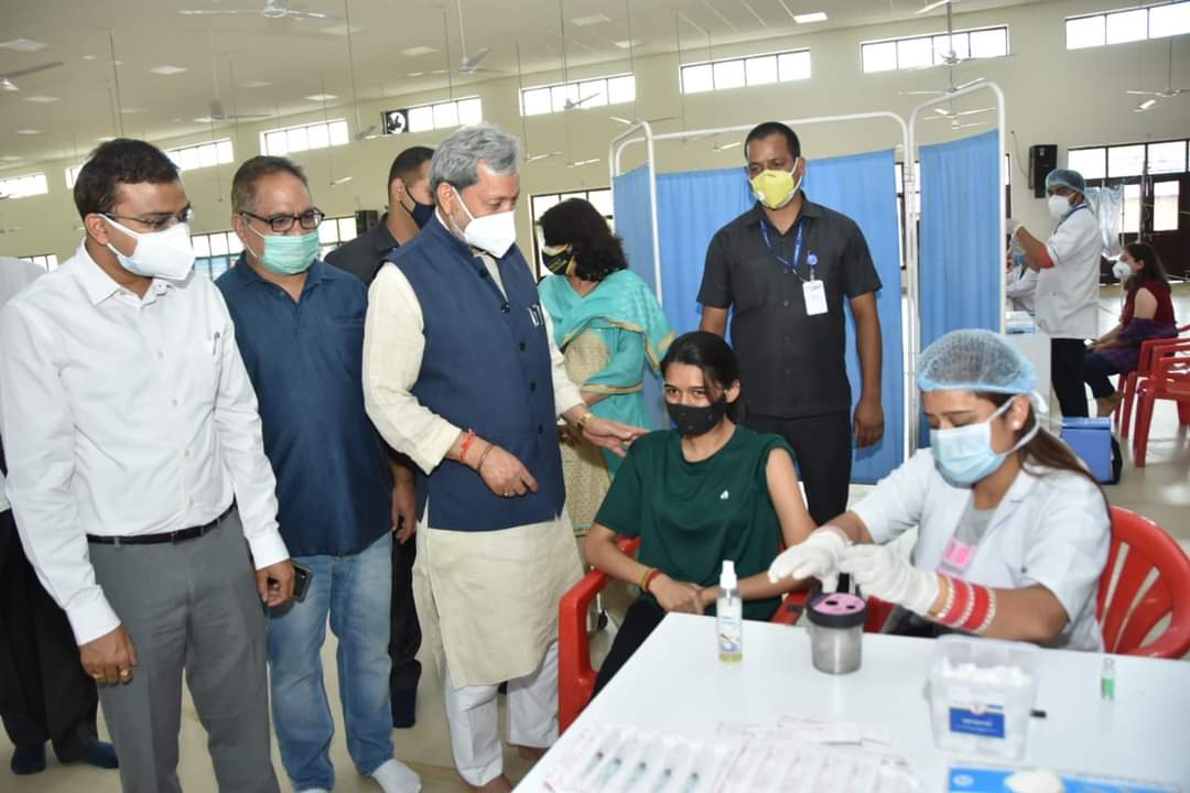 देहरादून: मुख्यमंत्री श्री तीरथ सिंह रावत ने कारगी चौक के समीप संत निरंकारी भवन में चल रहे कोविड वैक्सिनेशन सेंटर का निरीक्षण कर स्वास्थ्य विभाग के अधिकारियों से वैक्सीनेशन की जानकारी ली। निरीक्षण में सभी व्यवस्थाएं सही पाये जाने पर मुख्यमंत्री ने संतोष व्यक्त किया। स्वास्थ्य विभाग के अधिकारियों ने जानकारी दी कि इस वैक्सीनेशन केन्द्र में 45 वर्ष से अधिक आयु एवं 18 से 44 आयु वर्ग के लोगों का टीकाकरण हो रहा है। इस अवसर पर जिलाधिकारी देहरादून डॉ. आशीष कुमार श्रीवास्तव भी उपस्थित थे।इसके बाद मुख्यमंत्री श्री तीरथ सिंह रावत ने तत्पश्चात दून अस्पताल में कोविड वैक्सीन की दूसरी डोज ली।