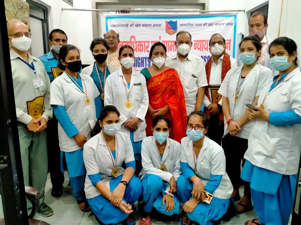 देहरादून: मानवाधिकार एवं सामाजिक संगठन द्वारा डॉक्टर डे की पूर्व संध्या पर प्रेमसुख धाम के डॉक्टर डॉ आशुतोष माथुर व ओएनजीसी के मुख्य चिकित्सक अधिकारी डॉक्टर पंकज माथुर जी को राष्ट्रीय अध्यक्ष सचिन जैन जी द्वारा सम्मानित किया गया इस अवसर पर मानवधिकार एवं सामाजिक न्याय संगठन की प्रदेश अध्यक्ष श्रीमती मधु जैन जी ने जानकारी देते हुए बताया डॉक्टर्स डे देशभर में 1 जुलाई को मनाया जाता है यह खास दिन डॉक्टरों के योगदान को सम्मान देने के लिए है 1 जुलाई को देश के महान शिक्षक और पश्चिम बंगाल के दूसरे मुख्यमंत्री डॉ बिधान चंद्र राय का जन्मदिन और पुण्य तिथि होती है डॉक्टर रॉय देश की सेवा में लगे रहते थे जिनको सम्मान देने के लिए 1 जुलाई को राष्ट्रीय चिकित्सक दिवस मनाया जाता है उन्होंने जानकारी देते हुए बताया कि आज पूरा विश्व करोना महामारी की चपेट में है ऐसे में जीवन की रक्षा करने वाले डॉक्टरों ने लोगों को कोविड-19 नाम से अपनी सेवाएं देकर इस दानव से बचाए है।सम्मानित होने वालों में डॉ दिनेश शर्मा डॉ ममता माथुर डॉ अंशुल अर्थवाल (नर्स में) रीटा बबली प्राची आंचल अनु गौरव सिंघल नेहा नेहा शर्मा पंकज शर्मा मोनिका सुधा सिक्योरिटी गार्ड खुशीराम आदि को सम्मानित किया गया।इस अवसर पर रेखा निगम , कविता चौहान, रोमा देवी,राजकुमार तिवारी आदि लोग मोजूद रहे।