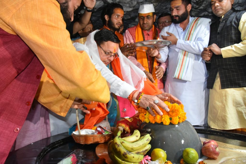 शपथ ग्रहण से पहले टपकेश्वर मंदिर पूजा अर्चना को पहुंचे सीएम धामी