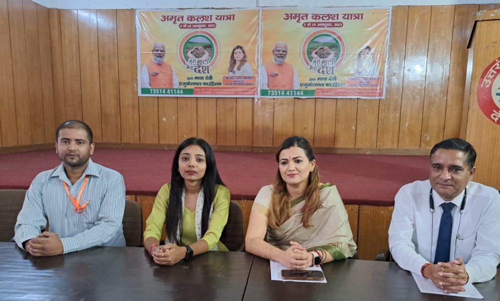 डॉ तृप्ति ने बताया 25 अक्टूबर, 2023 को देहरादून में एक एक भव्य समारोह किया जाएगा। फिर 28 अक्टूबर को दिल्ली में होने वाले कार्यक्रम में हम यह मिट्टी प्रधानमंत्री को प्रदान करेंगे। साथ ही उन्हें उत्तराखंड की जनता से कहा कि उनके इस अभियान में उनका सहयोग करें और प्रधानमंत्री मोदी के “मेरी माटी मेरा देश” अभियान को सफल बनाएं। पत्रकार वार्ता में डीन कैंपस मनीष पांडेय, आशुतोष बडोला डिप्टी डायरेक्टर एडमिन माया कॉलेज, रितिका मौजूद थे।