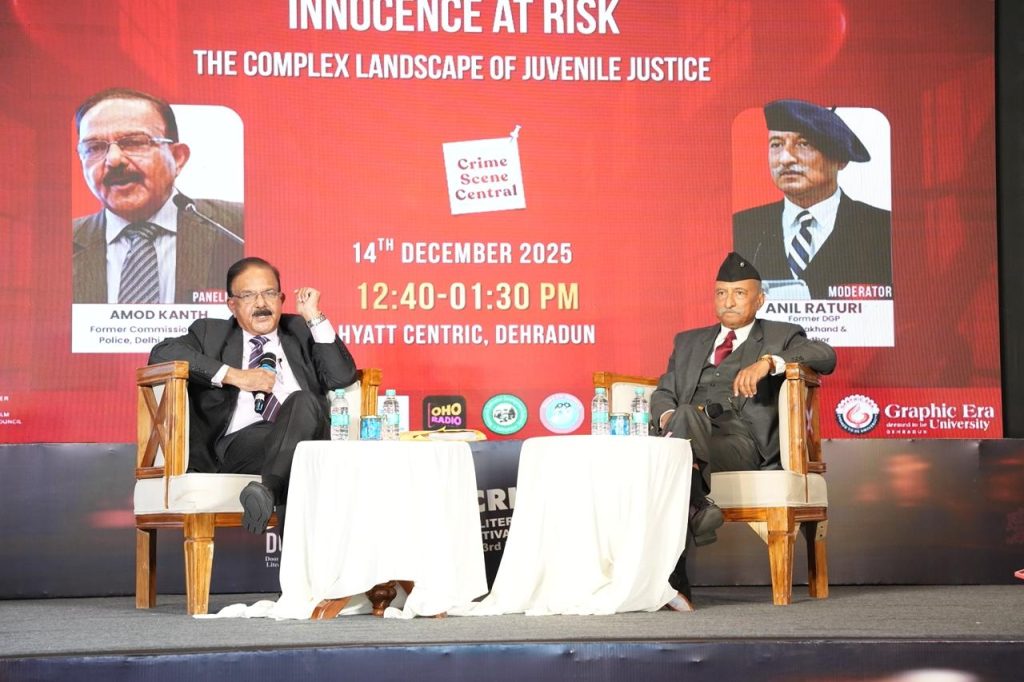 “इनोसेंस एट रिस्क: द काम्प्लेक्स लैंडस्केप ऑफ़ जुवेनाइल जस्टिस” सत्र में आईपीएस एवं सामाजिक कार्यकर्ता आमोद कंठ  ने पूर्व डीजीपी अनिल रतूड़ी के साथ बच्चों की न्याय प्रणाली में संवेदनशीलताओं पर चर्चा की। कंठ ने स्पष्ट किया कि ‘जुवेनाइल’ अब भारित शब्द नहीं रहा और इसे ‘कानून से संघर्षरत बच्चा’ तथा ‘देखभाल और संरक्षण की आवश्यकता वाला बच्चा’ कहा जाता है। उन्होंने कहा कि किशोर न्याय प्रणाली दंड नहीं, बल्कि देखभाल पर केंद्रित है और बच्चों के भविष्य की रक्षा के लिए रिकॉर्ड साफ किए जाते हैं। उन्होंने बताया कि किशोर अपराध कुल मामलों का एक प्रतिशत से भी कम है, जबकि भारत में लगभग 3–3.5 करोड़ बच्चे देखभाल की आवश्यकता में हैं, जिनके मुकाबले संस्थागत क्षमता केवल करीब दो लाख की है। गोद लेने की संख्या 3,000–3,500 तक सीमित है, जबकि फोस्टर केयर और स्पॉन्सरशिप अभी भी कमजोर हैं। प्रयास जेएसी सोसाइटी के कार्यों का उल्लेख करते हुए उन्होंने कहा कि पुनर्वास संभव है, जैसा कि हाल ही में एक बाल गृह की 10 लड़कियों ने दिल्ली विश्वविद्यालय की परीक्षाएं पास कीं। हालांकि, 18 वर्ष के बाद अपर्याप्त आफ्टरकेयर, मिशन वात्सल्य का कमजोर क्रियान्वयन, बाल कल्याण समितियों का कम उपयोग, सीमित एनजीओ सहयोग और हेल्पलाइन 1098 का बंद होना गंभीर चुनौतियां हैं। अनिल रतूड़ी ने कहा कि किशोरावस्था एक जटिल विकासात्मक चरण है और 2015 के संशोधन के तहत 16–18 वर्ष के गंभीर अपराधों में मानसिक और शारीरिक परिपक्वता का आकलन किया जाता है; ऐसे अधिकांश मामले गहरे सामाजिक-आर्थिक अभाव से जुड़े होते हैं।